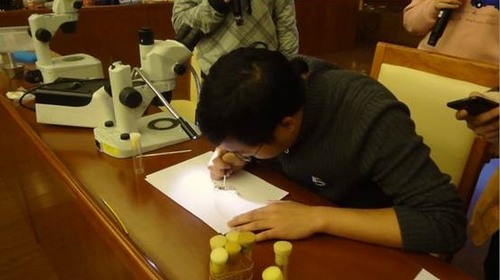 最后的环节队长袁卿“慧眼识雌雄”在1min内准确无误的辨别了49只果蝇的雌雄。