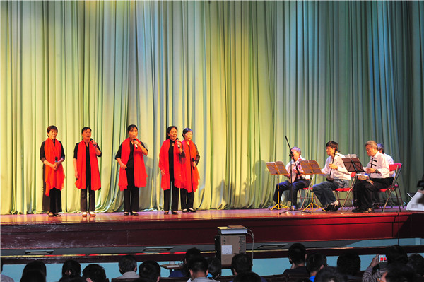 文化广场在老干部合唱团气势恢宏的大合唱中拉开序幕。管弦声声,丝竹和鸣,18支演出队伍采用诗歌朗诵、舞蹈、舞台剧、小品等丰富多彩的形式,用激昂的歌声、优美的舞姿和真挚的情感表达了对祖国的祝福。整场演出掌声阵阵、高潮迭起,《卢沟谣》、《红旗颂》等经典歌曲在舞台上久久回荡,熟悉的旋律焕发出来的爱国心、赤子情,汇聚成投身科研创新实践的巨大力量。通用运行部职工沈雁平罹患癌症,已动过两次大手术,主动要求在文化广场登台献唱《精忠报国》,他的赤子之心,他的勇气和毅力,让听众深受感动,这充分展示了高能所职工朝气蓬勃、坚忍不拔的精神风貌。