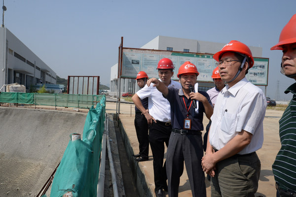 吴茂芹一行首先参观了工程沙盘。陈元柏为来宾详细讲解了散裂中子源工程的概况和应用前景。随后,吴茂芹一行参观了施工现场,了解了项目的施工进展。