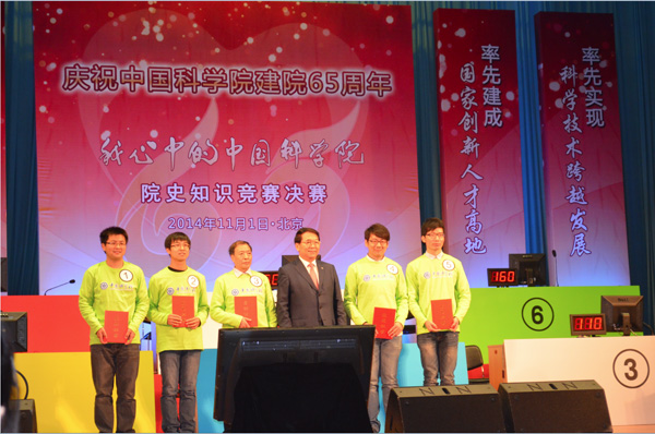 11月1日,加速器中心的丁亚东以预赛满分的成绩进入了决赛。中心团支部积极组织人员到决赛现场参加该活动。在5轮必答题和15道抢答题后,丁亚东所在的绿队最终获得了一等奖,中国科学院院长白春礼为其颁奖。这不仅是他个人所取得的好成绩,同时也是加速器中心的荣誉。