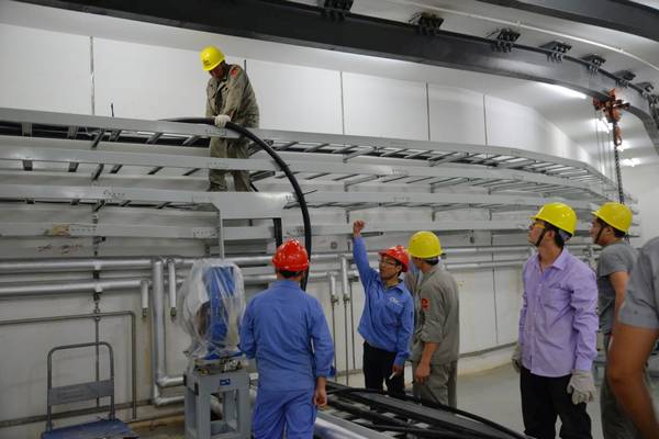 由于工作性质的原因,高温假期间也是技术支持部最繁忙的时候。一方面,需要进行各项工艺设备的隧道安装;另一方面,需要对水、电、空调等通用设备进行检修、维护,部分岗位的工作量甚至相当于平时的两倍。东莞分部技术支持部副主任黄金书介绍,为了保证施工现场各项工作有序开展,技术支持部除出差和因特殊事由请假人员外,超过2/3的职工全部奋战在工程一线,为CSNS工程的进展争取了宝贵的时间。假期期间,已经完成大部分RCS二极磁铁在隧道的安装就位工作,LRBT隧道电缆的铺设工作也接近尾声。