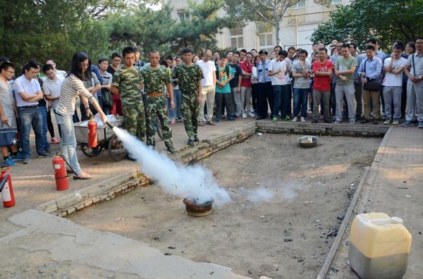 实地消防演练环节,由消防队员亲自讲解灭火器的使用方法并做示范。为了增加实效,按参训名单全部进行了使用灭火器灭火的实际操作。另外安全培训还进行了答卷测试、发放安全知识材料等。