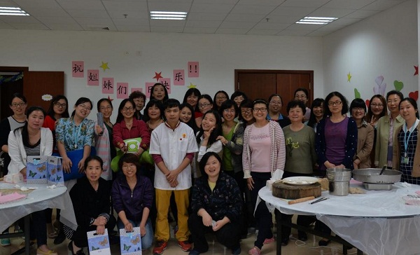 讲座结束后,组委会备好了亲手制作的点心,并由东方烹饪学校的李师傅现场教授60多名女职工分组制作广式点心,现场的气氛轻松而愉快,达到了活动的高潮。