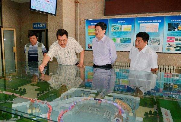 随后,邓卫洪一行对北京正负电子对撞机进行了考察,参观了中央控制室、北京谱仪和PET、CT等高能所自主研发的产品。