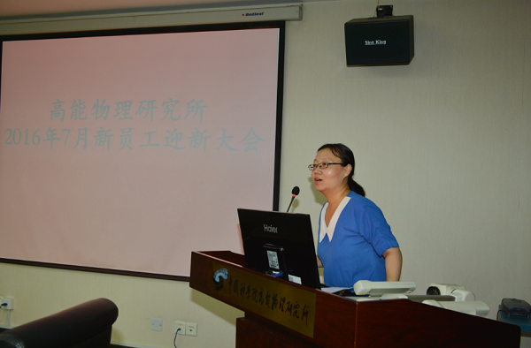 7月14日,中科院高能所举行了2016年新职工迎新会。党委书记、副所长潘卫民,副所长秦庆,高能所原副所长、老一辈高能人代表张闯,人力资源处处长郑文莉,加速器中心党总支书记、优秀青年职工代表岳军会出席了迎新会。会议由人力资源处副处长刘燕主持, 全所新职工20余人参加了会议,东莞分部视频参会。