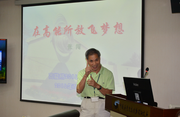 张闯作了《在高能所放飞梦想》的报告。报告展示了高能所成立四十周年的发展历程,并寄语新职工:要保持理想,甘于奉献、甘于寂寞,不断探索、不断创新,为中华民族的伟大复兴而努力奋斗。