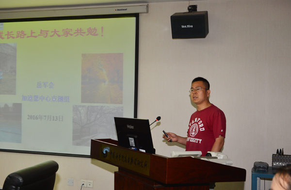 岳军会作了《成长路上与大家共勉》的报告,与新职工分享了自己成长的经验心得,包括如何做好从学生到职工的角色转变,如何解决工作中遇到的难题等。