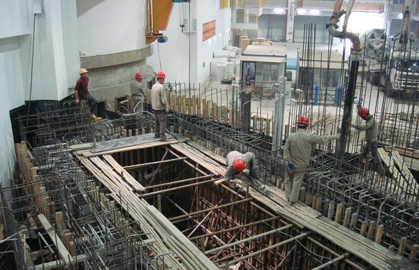 8月3日,在谱仪南大厅进行多功能反射谱仪和小角谱仪的固定混凝土第一次浇筑,这意味着两台谱仪基础建设工程取得了重要进展。