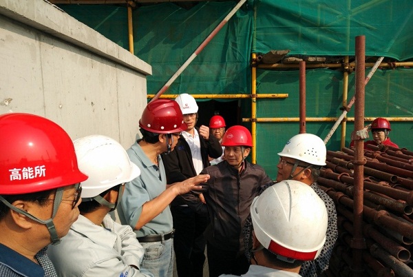 9月30日,中科院高能所园区规划领导小组视察了高能多学科研究试验平台施工现场,副所长罗小安等小组成员检查了现场安全及施工质量情况。