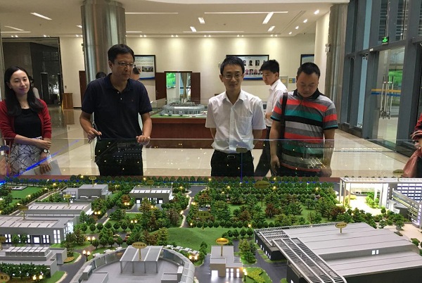 陈延伟在CSNS沙盘前介绍了散裂中子源的基本情况、装置原理和国际地位等。陈延伟同时提到,散裂中子源建设队伍以年轻人居多,东莞分部非常注重青年思想引领,且目前正在筹备建设共青团组织,以进一步提升青年人的凝聚力和战斗力。何俊聪也表示,今后团市委会加强与东莞分部共青团组织的联系,并通过举办各种活动,增强分部青年科研人员在东莞的归属感。
