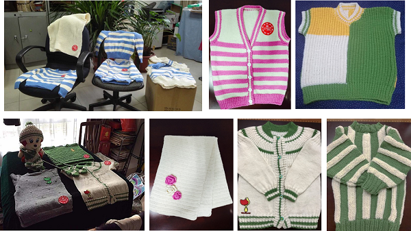高能所女职工为新疆地区5至15岁青少年编织的各类毛线织品