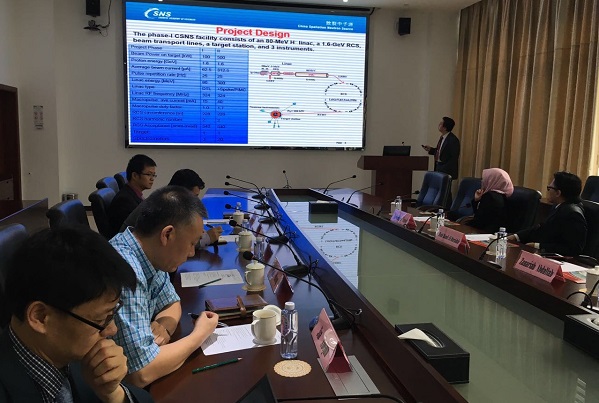 在随后举行的座谈会上,王生介绍了CSNS加速器、靶站的相关情况。马来西亚大学代表团对CSNS取得的成绩表示赞赏,并提出了关于派遣科学家前往CSNS进行短期访问、未来申请到CSNS做实验等相关事宜。