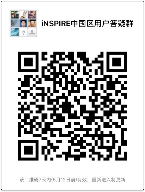 INSPIRE中国区用户答疑群(请扫二维码入群,5月12日之前有效)