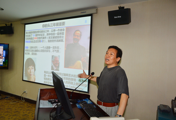 理论物理室主任邢志忠作了题为《一个老职工对高能所的理解》的报告。他在报告中以自己的工作经历和生活感悟,生动风趣地介绍了高能所团结协作、宽容并蓄的精神及认真做事的工作氛围,讲述了自己的科研经验和人生哲学,并鼓励新职工在工作生活中以积极的心态面对挑战,实现自身价值。