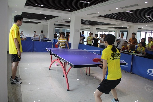 本届比赛由东莞分部工会、共青团筹备组共同主办,东莞分部乒乓球协会承办。和往届比赛一样,小组赛实行循环积分赛,男队共8支队伍,女队7支队伍,相较去年增加了两支学生联队参赛。经过小组赛的激烈拼搏,男团阵营中,加速器1队和加速器2队携手出线,机关1队和中子1队从另外一个小组脱颖而出。女团比赛,加速器1队和机关1队分别以小组第一出线,机关2队和第一次组团参赛的学生联队成功晋级半决赛。