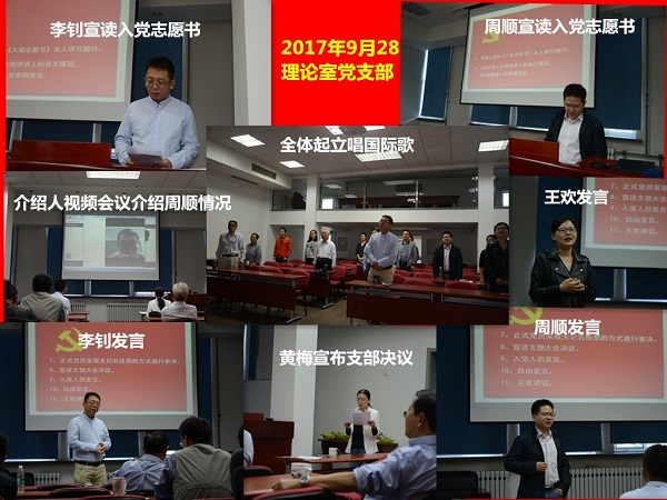 吸收优秀科研骨干加入组织是党委交给支部的重要任务。理论室严格按照发展党员的工作流程,无记名投票一致表决通过两名发展对象发展为预备党员。介绍人详细的介绍了两位年轻的80后科研骨干的学术个人情况,以及申请入党后在理论学习、思想认识以及实际工作中的优秀表现。