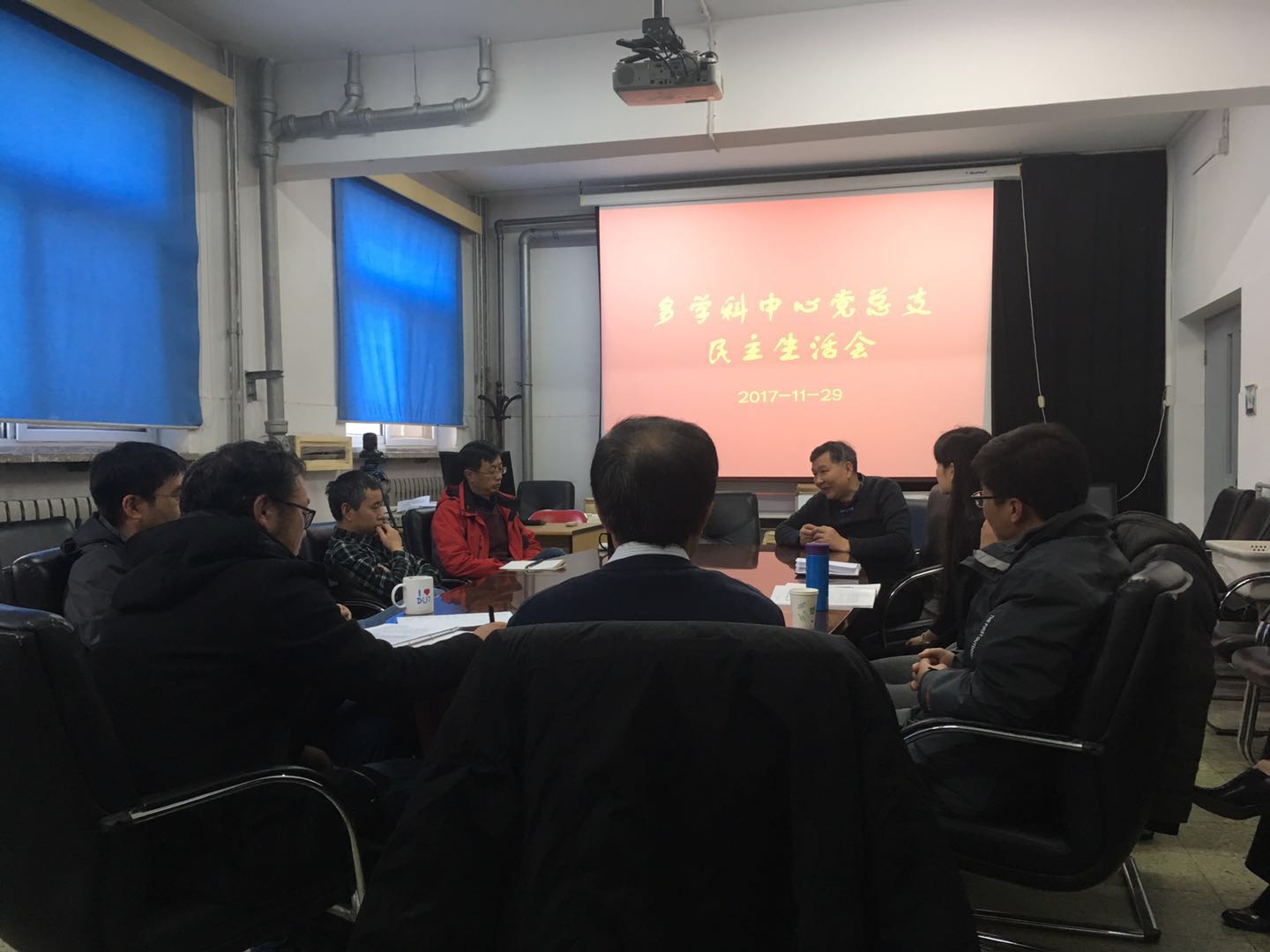 会议由总支书记王宝义主持,他首先介绍了本次民主生活会的目的及多学科党总支在这一年来的工作情况。王宝义同志结合十九大学习情况和中心“两学一做”的工作,提出将对十九大精神的理解落实到中心的日常工作和科研任务中去,不要让学习流于形式;在新光源的建设工作中,充分发挥支部的带头作用,加强年轻职工的思想教育,引导科研工作者体会到工作的重要性和责任感。本次民主生活会会前广泛征集了党员和群众的意见,会上开展了批评和自我批评,围绕着中心在所里的定位问题、如何加强秘书组与课题组之间的合作、职工待遇问题等方面进行了讨论,并对总支和中心工作提出了批评意见和改进建议。