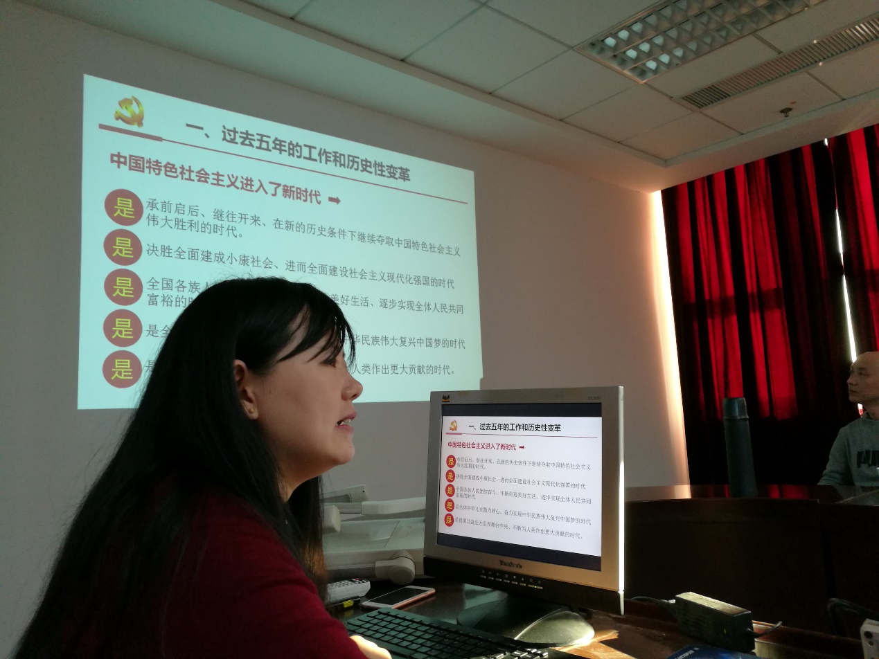 杜华向与会党员和入党积极分子宣读了“关于学习宣传贯彻党的十九大精神的通知”内容,并强调:党的十九大是我国在全面建成小康社会决胜阶段、中国特色社会主义进入新时代的关键时期召开的一次重要会议。学习宣传贯彻好党的十九大精神、深刻理解准确把握十九大精神,是当前和今后一段时间我所各级党组织的首要政治任务,希望党员和入党积极分子充分重视并认真学习和贯彻执行。
