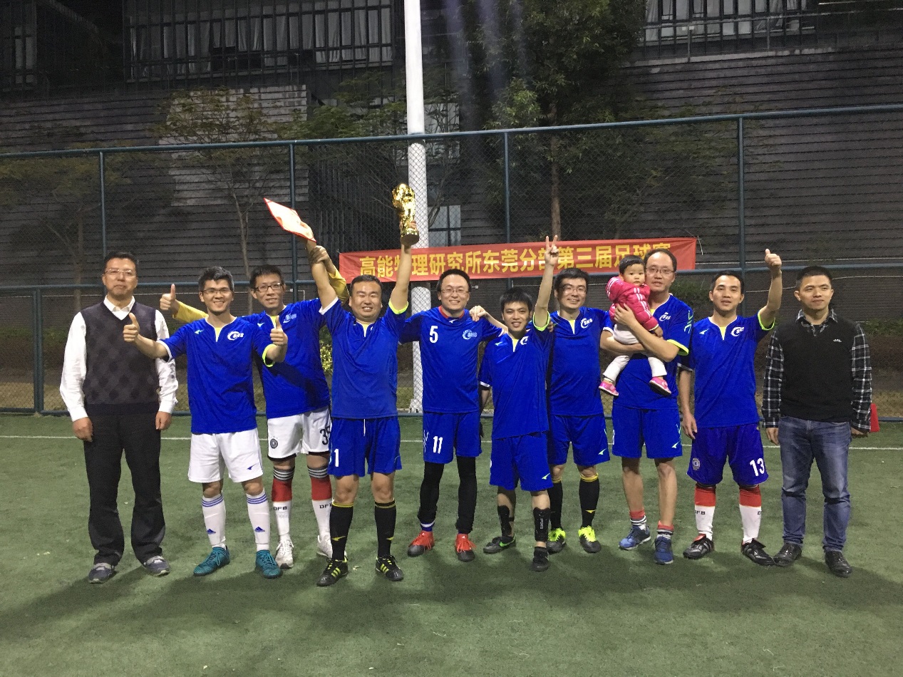 12月24日,一年一度的东莞分部足球赛在松山湖图书馆足球场落下帷幕。本次比赛由分部工会主办,足球协会承办,共有5支队伍参加,包括机关与技术支持联队、加速器1队、加速器2队、中子1队和中子2队。经过6个比赛日、11场比赛的角逐,最终机关与技术支持联队击败卫冕冠军加速器2队,获得冠军,加速器2队和加速器1队分别获得亚军和季军。