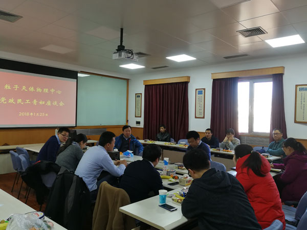 1月25日下午,粒子天体物理中心党支部组织召开了党、政、民、工、青、妇座谈会。宋黎明、孙越、陶军全、李旭芳、李哲、李正伟等近20名代表出席会议。