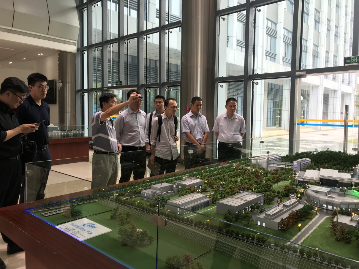 奚基伟首先带领来访人员参观了沙盘,详细介绍了中国散裂中子源项目的基本情况以及建设历程,之后双方进行了座谈。座谈会上,中船重工集团介绍了来访目的,中船重工正在推进落实与广东省的战略合作,散裂中子源作为落户广东的国家重大科技基础设施,与中船重工有很多可能的合作领域,例如大型装置的能耗问题。黄金书对散裂中子源装置的能耗情况进行了详细介绍,双方针对节约能耗方面进行了讨论。