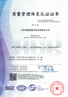 5月10日至11日,北京新世纪检验认证股份有限公司审核组对北京高能锐新科技有限公司质量管理体系换版运行情况进行再认证审核。5月23日,公司取得“质量管理体系认证证书”。