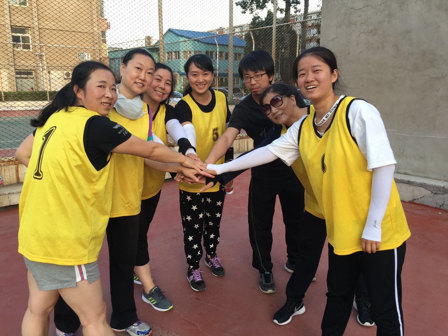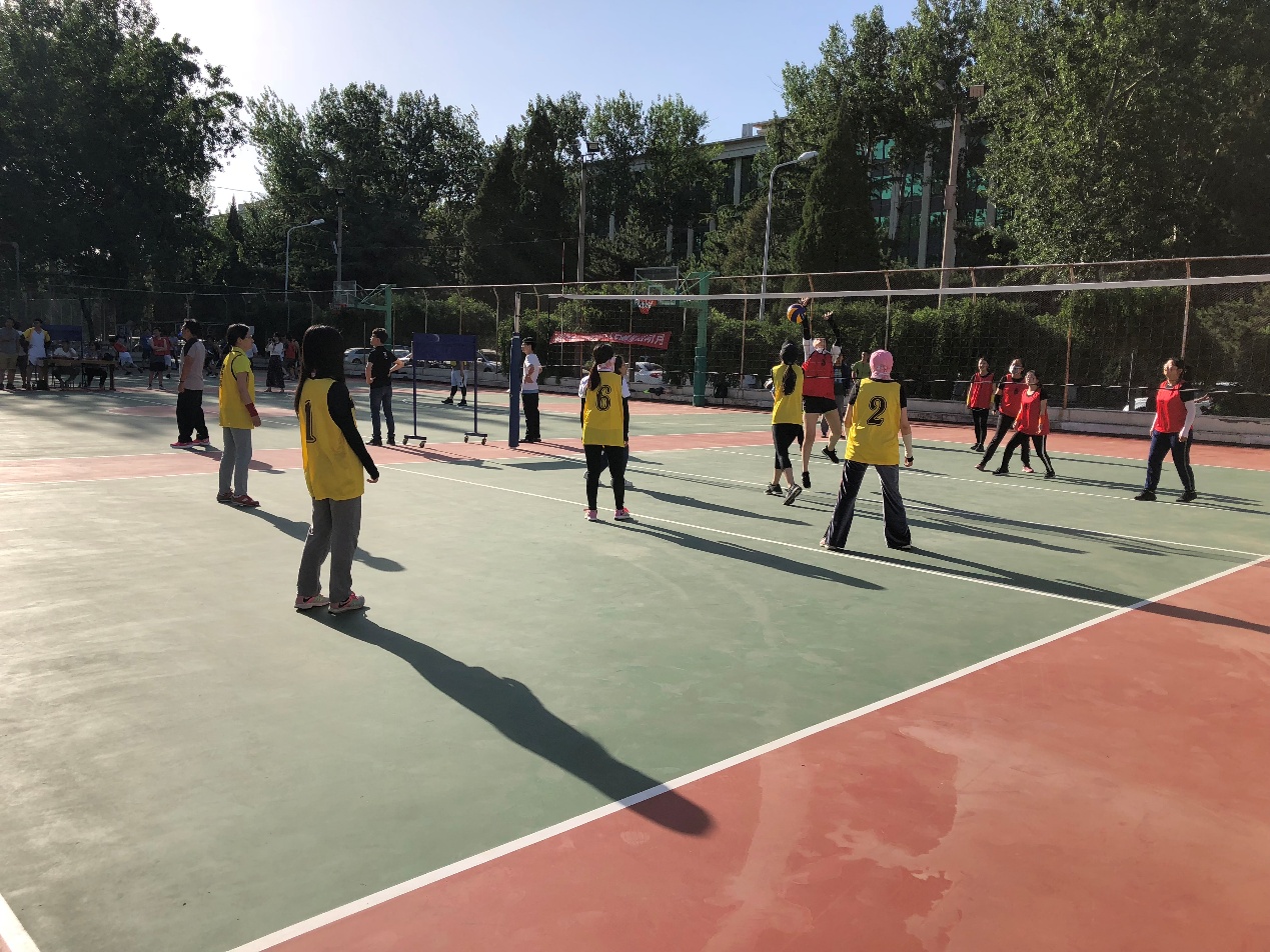 今年第一次在新修建的场地举行排球赛。今年的比赛与以往不同,因场地建好后已到炎热夏季,比赛只好改在下午下班后进行。大家都克服困难,牺牲业余时间积极参加训练和参赛。