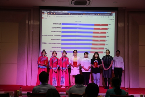 才艺大赛以团体赛的形式进行,所有参赛团支部分为A、B两区进行对决。首先计算中心小品《淘宝抢购》幽默的节目形式和诙谐的画面场景将大家带入比赛氛围。随后,幼儿园阴柔与刚毅并重的舞蹈《我的新衣》和极受欢迎的小品《慢半拍》迎来了阵阵掌声和欢呼。管理机关欢快的非洲鼓旋律《一瞬间》,以及粒子天体中心古典黄梅戏《树上的鸟儿成双对》和经典情歌独唱《后来》将A区比赛推向高潮。在一轮现场观众抽奖后,B区对战也在观众激情声中如期而至。核技术代表团声情并茂的相声《校园杂谈》、实验物理中心粤语豪唱《富士山下》、加速器中心极具青春活力的机械舞《popping freestyle solo》和深情款款的对唱《美丽的神话》展现出了高能青年才俊的多才多艺。其后,实验物理中心太极表演和多学科中心唯美的沙画展示《花好月圆》也传达出了对中国传统文化和传统节日美好传承和祝福的寓意。