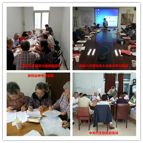 竞赛活动结合我所离退休党员的实际情况,并充分考虑到人员体量大、部分居住分散、年高体弱者多等因素,采取按支部发放纸质问卷、由各支部集中组织答题的方式开展。自9月5日至9月25日,离退休八个支部分别以召开党员大会、组织集体学习或以党小组为单位分头落实等形式进行竞赛答题活动,上至年愈九旬的离休老干部、下至刚刚退休的“年轻”老党员,先后共有近200名离退休党员参加了此项活动。在答题过程中,老党员们非常认真、严谨,对一些拿不准的题仔细斟酌、反复推敲,有的支部还以答题活动为契机组织党员再次学习了十九大报告的内容。