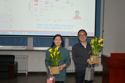 另外,今年理论室黄超光老师退休、黄梅老师调离,在年终考核会后举行了一个小型欢送仪式,感谢他们对理论室和粒子理论教研室作出的贡献。