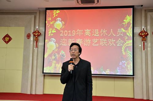 党委副书记罗小安向与会老同志通报了过去一年高能所在各个领域取得的喜人成绩和科研成果,以及2019年的发展目标。他感谢离退休职工为高能事业打下的基础和做出的贡献,并代表所党委向全体离退休老同志致以诚挚的问候和新春的祝福。