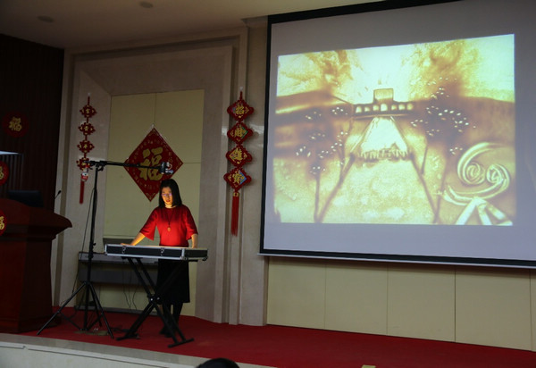 在一首优美动人的《我和我的祖国》歌曲中,文艺演出拉开序幕,演出由多学科中心荚晶、核技术应用研究中心李默涵主持。管理部门中层干部首先登台,深情表演了配音诗朗诵《延伸,我们的路》;退休老干部李营献上了一曲《双脚踏上幸福路》;青年舞蹈协会的姑娘们表演的《风筝误》、实验物理中心的歌伴舞《天空之城》给现场观众带来了精彩的视听享受;党政办潘倩与行政处王岩合唱的歌曲《慧眼心愿》反映了“慧眼”卫星发射成功背后科研人员的辛勤付出;实验物理中心马骁妍执导的视频《乘风而行,中微子的2018》,展现了科研人员的情怀;幼儿园老师带来的小品《慢半拍》给观众带来了阵阵欢笑;正话反说、高能所知识问答的游戏和抽奖现场热闹非凡;多学科中心荚晶的沙画表演《收获·希望》创意满满,将现场的气氛推向高潮。
