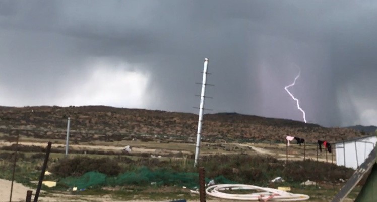现场人员拍摄的雷暴情况,闪电距离施工现场很近