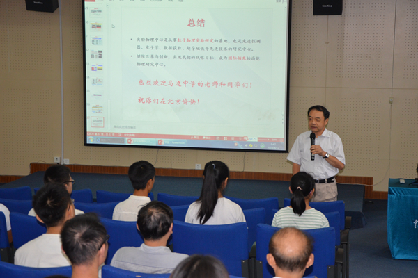 在12日举行的实验物理中心党员大会上,马边中学唐勇老师向中心全体党员介绍了马边中学的教育发展情况,并报告了近几年的高考录取的统计情况。结果表明,“高能奖学金”设立以来,马边中学的升学情况稳步提升。奖学金的设立以及与高能所的交流活动,使马边师生开阔了眼界,受到了鼓舞,信心有很大的增强,学生学习的主动性也明显提高。唐勇表示,马边中学要继续抓好教师队伍建设,努力提升教学水平,为民族地区教育事业的发展和人才培养作出应有的贡献。实验物理中心党总支书记王铮介绍了实验物理中心的科研工作、人员组成和学术交流情况。最后,高能所所长王贻芳致辞,对马边中学师生的到访表示热烈欢迎,并热情鼓励同学们不断开拓视野、努力学习、再创佳绩。