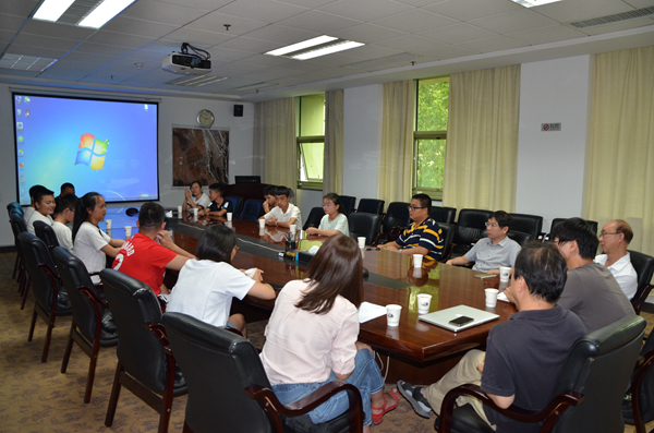实验物理中心党总支书记王铮介绍实验物理中心情况