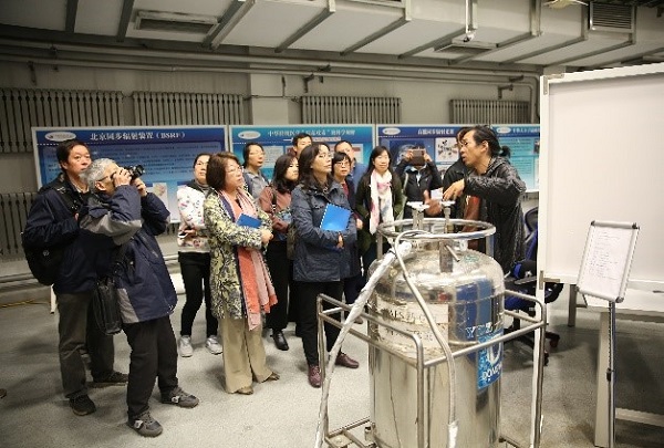 在高能所讲解员的引领下,社员们依次参观了博展馆、直线加速器速调管长廊、北京正负电子对撞机控制室、同步辐射实验室、计算中心、我国首颗X射线天文卫星慧眼卫星的标定大厅以及卫星控制室等。