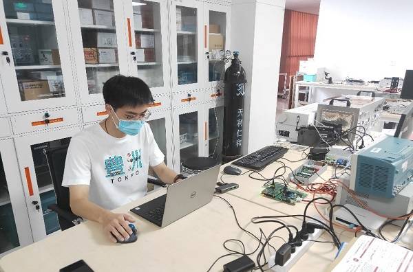 高温假期间李航旭博士在调试电子学读出板