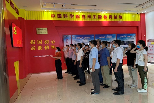 广州分院党委、纪委一行在中科院高能所“报国初心·高能情怀”党员主题教育基地重温了入党誓词,观看了党员教育宣传片,对党员教育基地工作给予悉心指导。