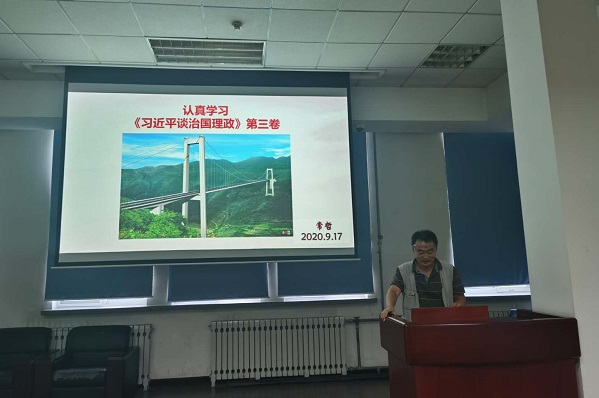 在党课学习环节,支部邀请了所党委委员常哲讲《学习习近平谈治国理政》的党课。常哲委员首先介绍了《习近平谈治国理政》第三卷的主要内容,他结合基础科研比较关心的主题和时事进行了生动形象地讲解。通过此次党课学习,党员们深刻领会了我党在担负民族复兴的艰巨任务,增强自己肩上的时代使命感。