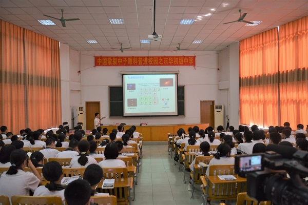 10月21日,中科院高能所东莞分部开展“科普进校园”活动。东莞分部中子科学部副主任张俊荣研究员来到东莞市东华初级中学为同学们作了题为《中子、光子、缪子——大装置探索小世界》的精彩讲座,并与现场300多名学生分享了微观粒子的奇妙与魅力。