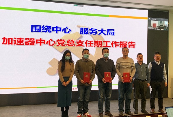 会议还向2020度加速器中心优秀党员、优秀党务干部和优秀党支部进行颁奖。2020年度中,经各支部民主评议并经总支讨论通过,加速器中心党总支共评选了7名优秀党员,分别是常正则,刘劲东,段哲,杜垚垚,徐广磊,孙舒晨,陈思雨。3名优秀党务干部,分别是米正辉、麻惠洲、刘佳及1个优秀党支部——加速器中心第三党支部。