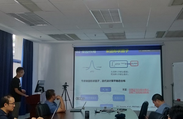 报告结束后,线上及线下的同事同何天龙就如何控制腔压、束团等效变压矢量等问题进行了深入交流。大家对报告中两种束流计算程序有了一定的了解,收获了很多关于束流计算模拟的经验和建议。
