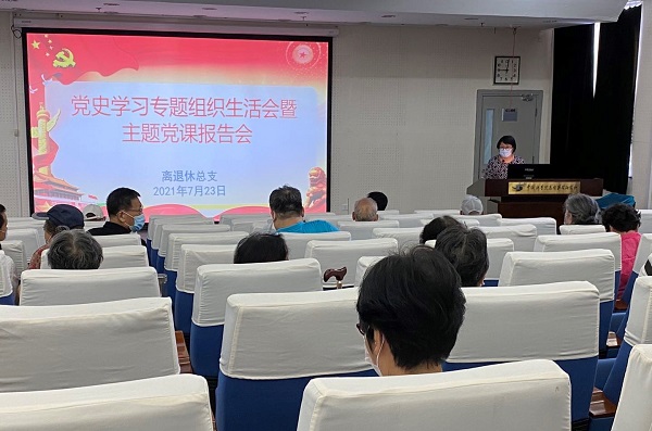 为进一步深化党史学习效果,根据中科院高能所党委《关于开展党史学习教育的计划》通知中有关部署要求,离退休党总支于7月23日上午召开党史学习专题组织生活会,并特别邀请所党委副书记罗小安到会作主题党课报告。会议由总支书记贾艳平主持,离退休各支部党小组长以上骨干及离退办工作人员计43人参加。