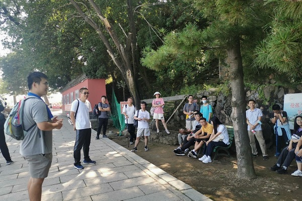 参观完平西情报联络站纪念馆后,在妙峰山山顶开展迎新活动,新入职老师和新入所学生依次做自我介绍。党支部书记吕才典表示,理论室向来是一个团结的小集体,希望新生尽快融入集体,互帮互助。他鼓励大家多做一些课外活动,活跃气氛,劳逸结合。