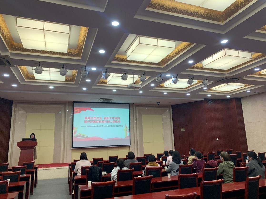 会议首先由妇委会主任王欢作2021年度工作总结,她向大家详细介绍了2021年妇委会组织建设工作、获得荣誉情况以及服务女性的成果,同时向大家作2022年工作计划汇报。王欢还带领与会女同志一同学习了侯建国院长在中国科学院2022年度工作会议上的《聚焦主责主业 狠抓工作落实 履行好国家战略科技力量使命》的报告与十九届历次全会会议精神。