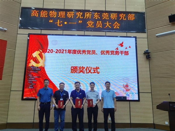 上午9:00,东莞会场按议程同步参加高能所庆祝活动和“科学家精神大讲堂”报告会。在“2020-2021年度高能所优秀共产党员、优秀党务干部、创新文化建设先进个人及集体”的颁奖环节,东莞会场与所本部同步举行颁奖仪式。本次评优活动,东莞研究部刘华昌同志荣获“高能所优秀共产党员”、付卫清同志荣获“高能所优秀党务干部”、中国散裂中子源合作谱仪建设团队荣获“高能所创新文化建设先进集体”、孙志嘉同志荣获“高能所创新文化先进个人”。