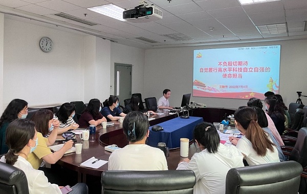 按照所党委工作安排,财务资产处党支部于7月4日邀请所党委委员王贻芳围绕“走好第一方阵 我为二十大做贡献”讲专题党课,会议由支部书记周亚主持。