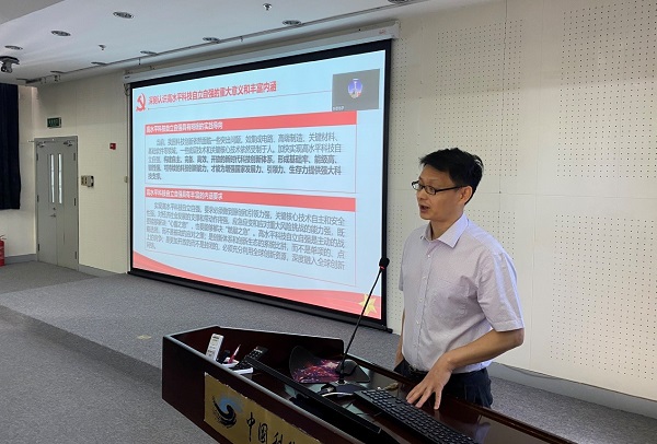 7月13日,党政纪联合党支部、科研计划处党支部邀请党委委员、所办公室主任郭立军为支部全体党员讲授“走好第一方阵,我为二十大做贡献”专题党课。此次活动由党政纪联合党支部书记王欢主持。