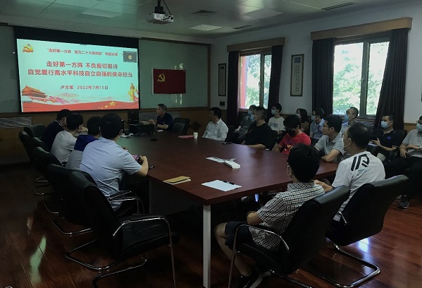 7月15日中午,应高能所粒子天体物理中心党总支邀请,所党委委员卢方军同志给中心全体党员讲“走好第一方阵,我为二十大做贡献”专题党课,报告题目为《走好第一方阵 不负殷切期待 自觉履行高水平科技自立自强的使命担当》。为了符合防疫政策,全体党员分成三个会场。