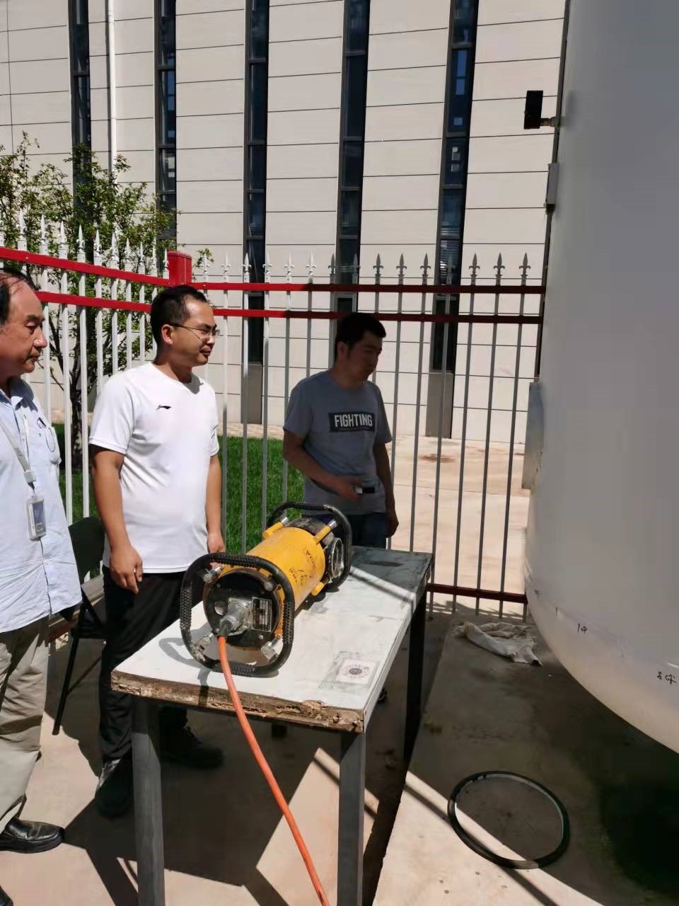 在室外储罐检验过程中,火辣的阳光直晒在人身上,不到两分钟汗水就能把人湿透,公辅系统人员还要将身体探进罐体核实检测人员反馈的情况,等从罐体再钻出来时全身已汗如雨下。同时,公辅厅各机房的室温高达36摄氏度,对于长时间待在里面的检修人员也是相当的艰难。但公辅系统人员带领设备检修和压力容器检测人员与高温抗衡,坚守检修一线,用坚毅的步伐迎着酷暑逆行,用汗水维护着公辅系统的设备安全,用实际行动诠释了责任与担当。